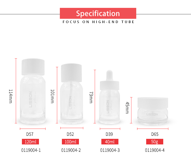 Apresente seus produtos de cuidados com a pele como protagonistas. Nossa linha de luxo transparente. Garrafa de vidro A embalagem para produtos de cuidados com a pele é projetada para revelar a cor, a textura e a transparência do produto, para que os consumidores percebam imediatamente seu valor. Em vez de mascarar as fórmulas, este frasco as valoriza — perfeito para marcas que vendem pureza, transparência e resultados visíveis.
